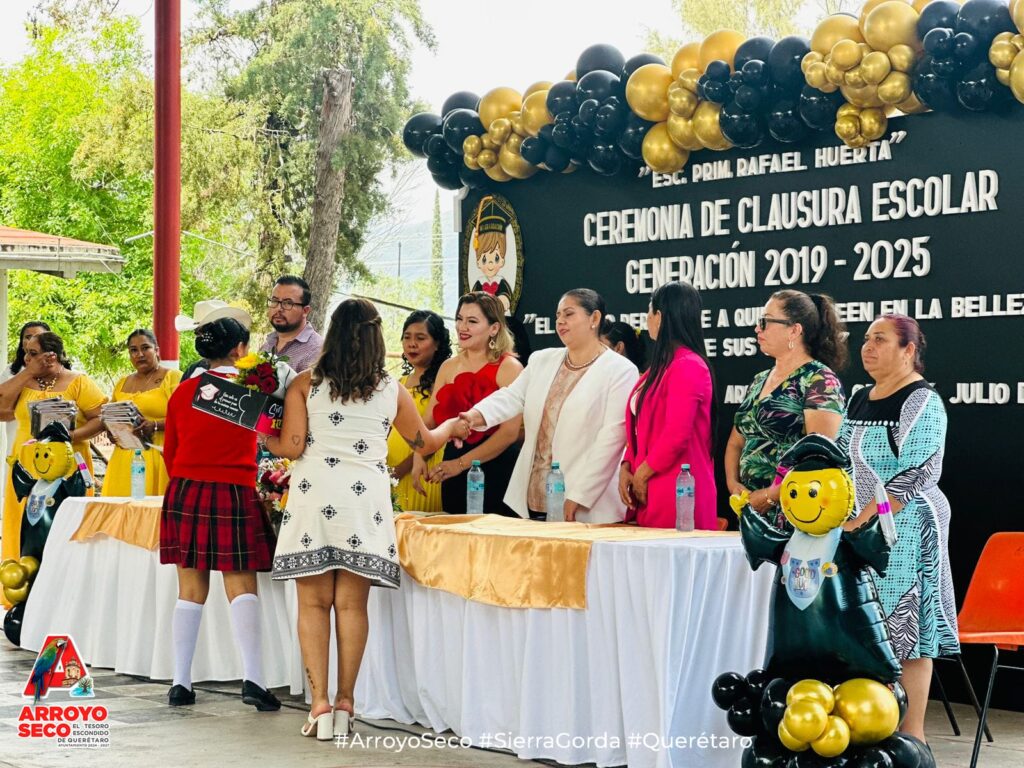 Arroyo Seco, Querétaro; viernes 4 de julio de 2025En representación del presidente municipal, Lic. Fernando Sánchez Gil, la directora del Sistema Municipal DIF de Arroyo Seco, Lic. Reina Camacho, asistió como invitada especial a la ceremonia de graduación de las y los estudiantes de la Escuela Primaria Rafael Huerta, ubicada en la cabecera municipal.